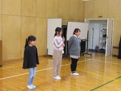 3・4年生がこども集会の発表の練習をしていました。本番前ですので、まだ詳しい内容はお知らせしませんが、楽しい発表になりそうです。お楽しみに。
