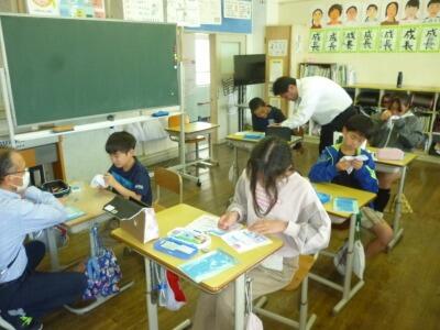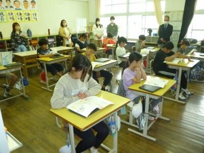 3・4年生の道徳の授業の様子です。思いやりについての授業でした。点字ブロックに自転車が置かれていて困っている目の不自由な人を、主人公の女の子が声をかけて助けるというお話を読んで、自分自身の経験について考える授業でした。