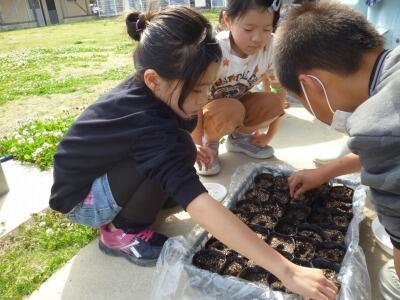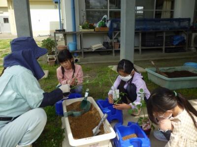 2月20日に、5・6年生の子ども達で、大きなポットに植え替えをしました。卒業式の会場を彩ってくれそうです。