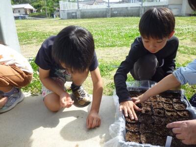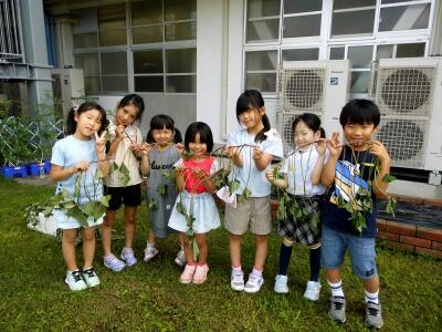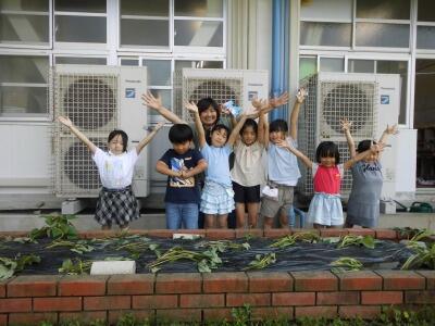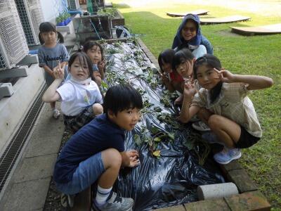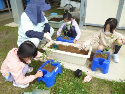 6月15日に、1・2年生の子ども達がサツマイモの苗を植えました。場所は、教室前の学級園です。秋に、大きなサツマイモが収穫できるといいですね。