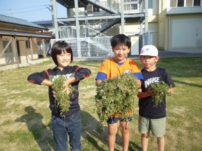 サツマイモの苗は、毎年地域の方からいただいています。太くて立派な苗でした。方財小学校を支えていただいている地域のみなさん、本当にありがとうございます。