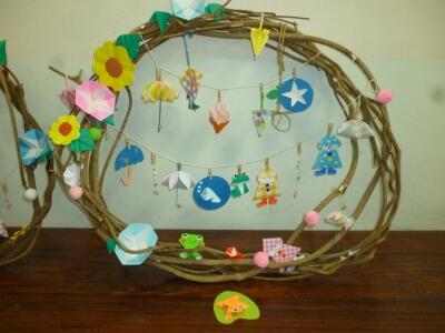 地域の方(いきいきはまゆうサロンさん)が、新しい掲示物を持ってきてくださいました。今回は、「梅雨」バージョンです。カサやカッパ、カエルなどを、かわいく飾っていただいています。ありがとうございます!