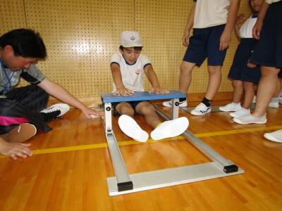 6月2日に、体力テストを実施しました。この日は雨でしたので、室内でできる「握力」「立ち幅跳び」「上体起こし(腹筋)」「反復横跳び」「長座体前屈」の測定を行いました。事前に、昨年度の記録も見せていましたので、自分の目標に向かって精一杯頑張る姿が見られました。