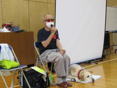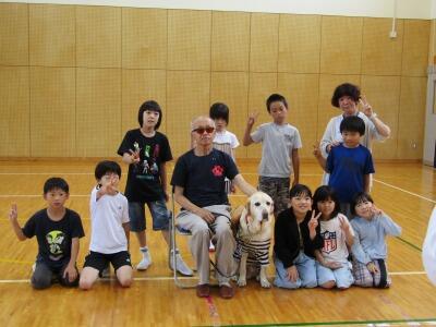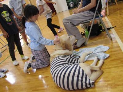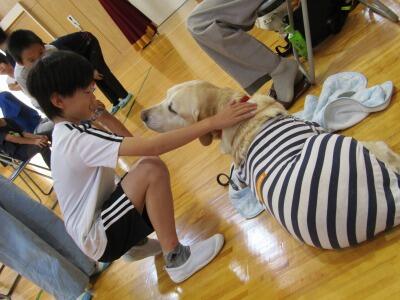 6月7日に、3・4年生の総合的な学習の時間として、盲導犬について学ぶ活動を行いました。九州盲導犬協会から、盲導犬ユーザーとボランティアの方を派遣していただきました。