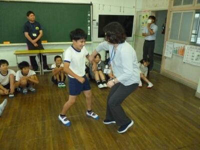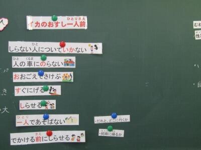 後半は、「いかのおすし」を確認し、外で遊んでいる時などに実際に声をかけられたら、どのように対応するかについて学びました。