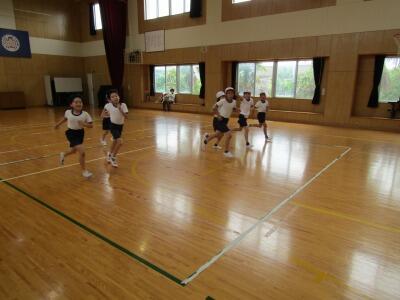 3・4年生の「20mシャトルラン」の様子です。持久力を測定する種目です。20mの距離を「ドレミファソラシド」の音が終わるまでに走らないといけません。その音のテンポも少しずつ速くなっていきます。最初は笑顔が見えていた子ども達も、だんだんと真剣な表情に変わっていきます。