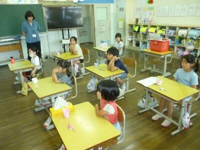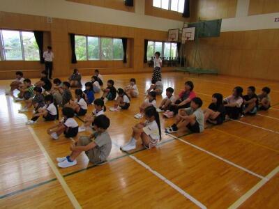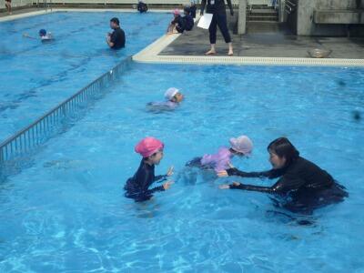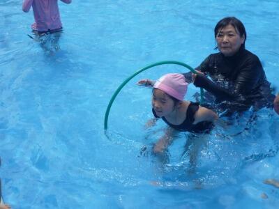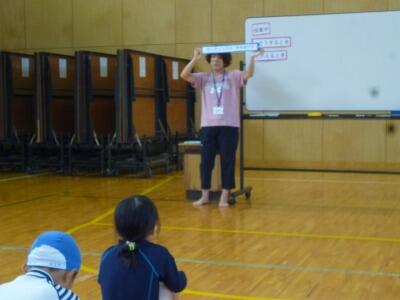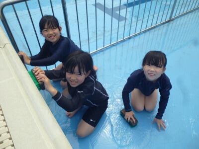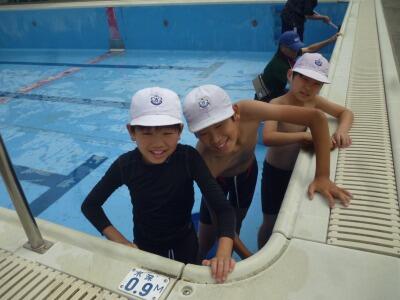 7月4日は、プール開きでした。体育館でのはじめの会の後、水慣れの運動(宝探しなど)をし、泳ぎ初めを行いました。
