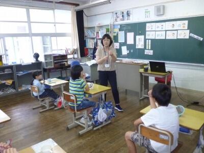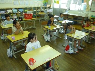 7月7日は、参観日でした。1・2年生は、道徳の時間の授業「ありがとうがいっぱい」を行いました。