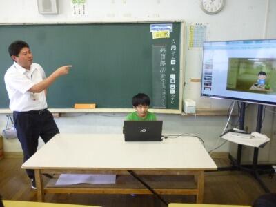 ワークシートはタブレット上に表示されていて、自分の意見を入力して、担任にデータで送信するというICTを活用した授業でした。
