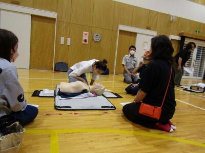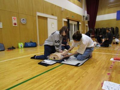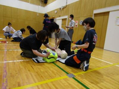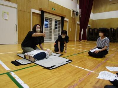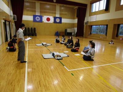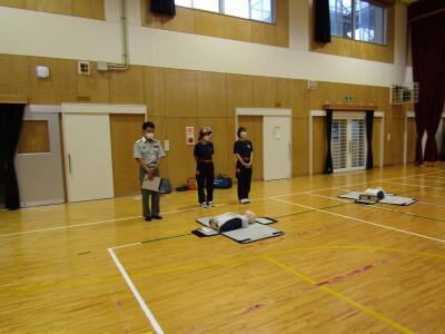 7月3日の夜に、PTA心肺蘇生法講習会が行われました。延岡市消防本部から講師をお招きし、胸骨圧迫やAEDの使い方等について、実技を中心に学びました。