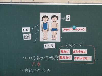 7月の第1週は、性教育指導週間でした。7月5日に、3・4年生の学級活動で、「自分を守る」の指導を行いました。