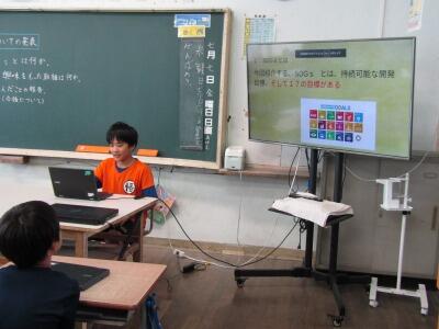 7月7日は、参観日でした。5・6年生は、総合的な学習の時間の授業を行いました。内容は、SDGsに関することの発表でした。