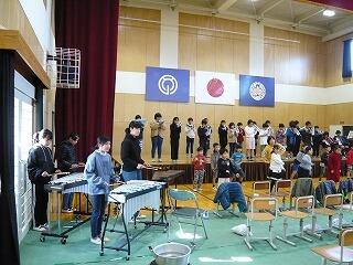 そして、子どもたちが興味津々だったミュージックベルの演奏でした。音階ごとにハンドベルの役割を決めて、1・2年生が「きらきらぼし」、3・4年生が「夕焼け小焼け」、5・6年生が「故郷」を練習しました。きれいな音が体育館に響きました。