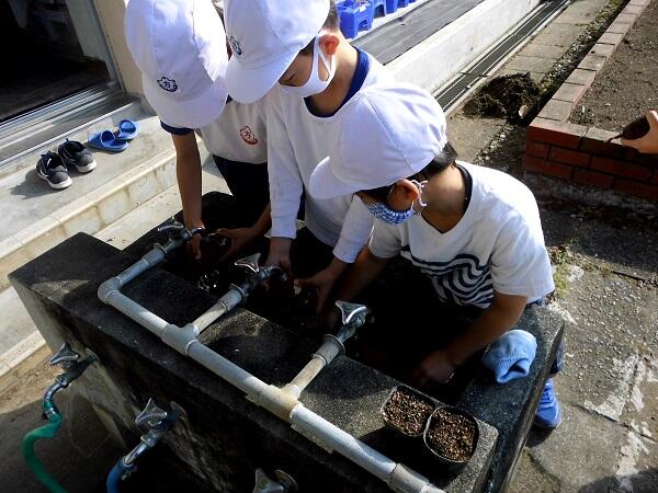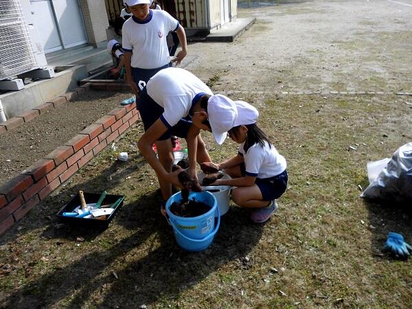 1・2年生9名で、植え付けました。大きく育つといいです。