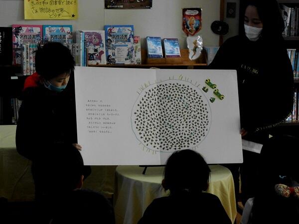 今日の3校時に、「読書祭り」を行いました。図書委員会の4名が、「読み聞かせ」「クイズ」をしてくれました。みんなで楽しむことができました。