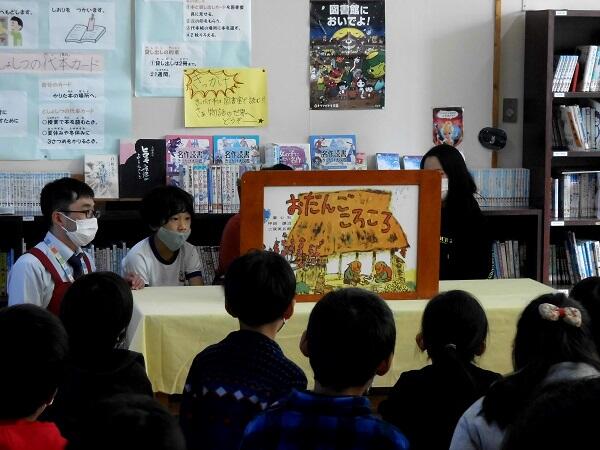 今日の昼休みは、図書委員会の6年生が、委員会活動の新たな取り組みとして、「読み聞かせ」を行ってくれました。