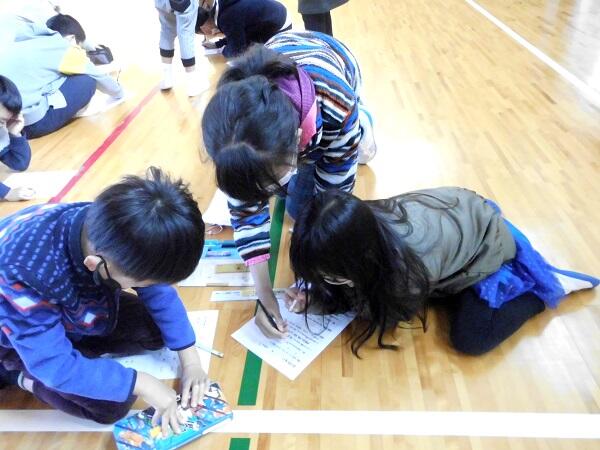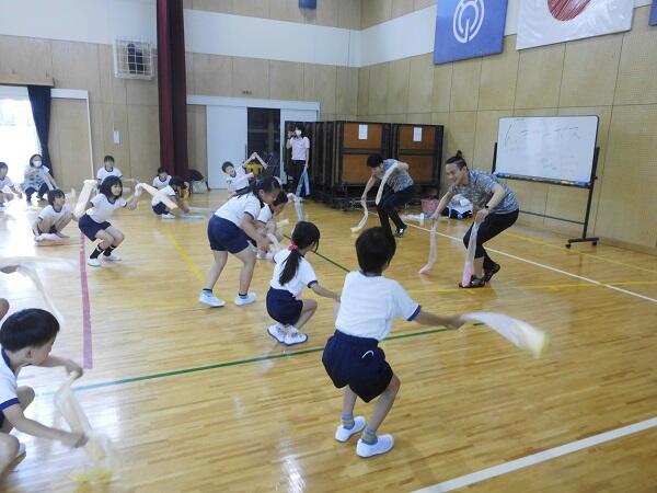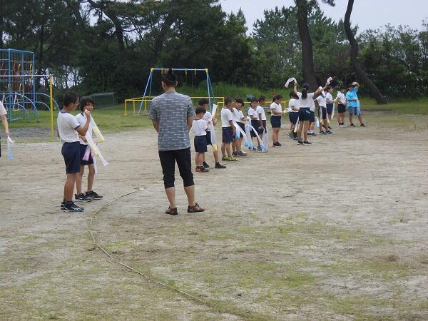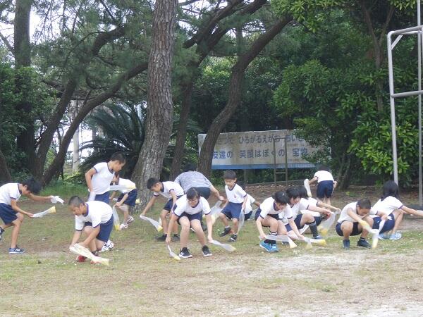 それぞれの係の先生から説明を聞いた後、実際に競技しました。高学年と下学年が一緒になって競技しますので、見ていてとてもほほ笑ましくなります。