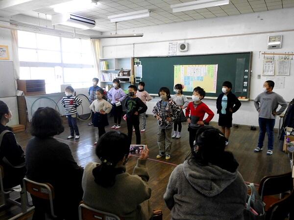 今日の5校時は、「わらべ唄の会」の方々に教えていただく全校音楽でした。