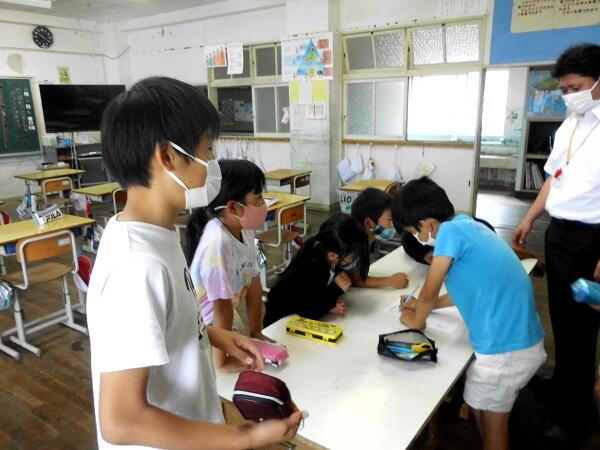 教室に帰ってからは、夏休み前に借りた本を借り直したり、夏休みの学習の丸付けをしたり、1学期から育てている植物を観察したりと、予定の時間いっぱい活動しました。