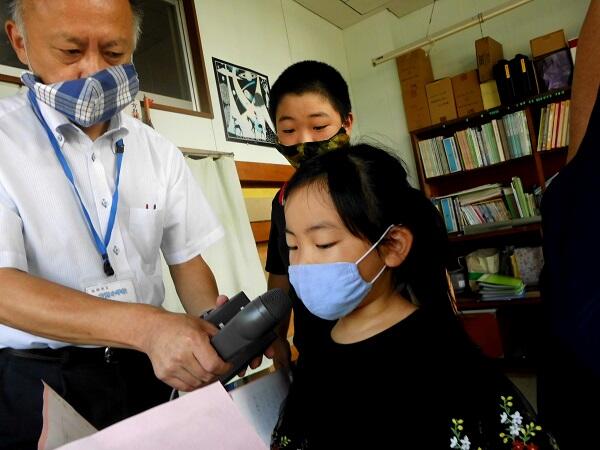 今日は、夏休みでたった一日の登校日。これまで9日間の夏休みをみんなで振りかえる日です。1学期もほとんどがそうでしたが、今日の登校日も43名の子どもたちが全員元気に登校できました。全校朝会で話された校長先生もそのことにふれられ、教職員みんなで43名の子どもたちに拍手を送りました。体育館の気温は、30℃。最近の暑さのせいでしょうか、30℃でもそれほど暑いとは思わないくらいで、子どもたちはしっかりと話を聞いていました。