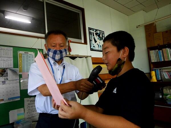 終業式では、2名の代表児童が、1学期頑張ってできるようになったこと、心に残った行事、学習で心がけたこと等、1学期の反省と2学期の目標を発表しました。