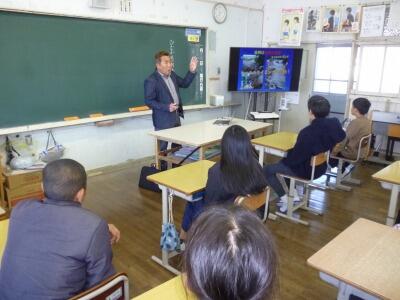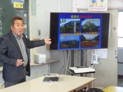 1月16日に、市のふるさと教育推進事業である「子どもたちに伝えたいこと」を行いました。延岡マリンサービスの方を講師(延岡観光大使やNPO法人ひむか感動体験ワールドの理事長も務めていらっしゃいます。)としてお招きして、5・6年生の子どもたちに、自然(山・川・海)豊かな延岡の魅力について、たっぷり語っていただきました。