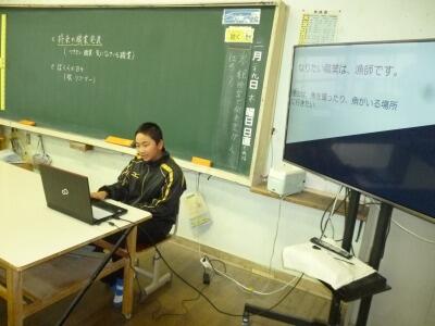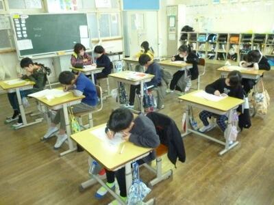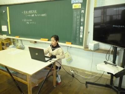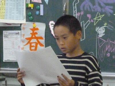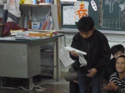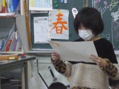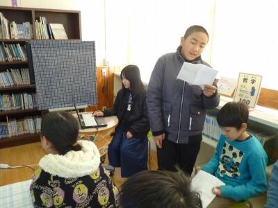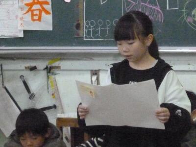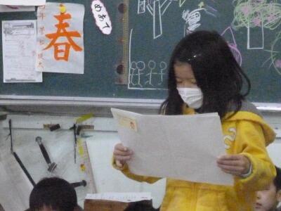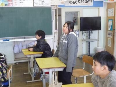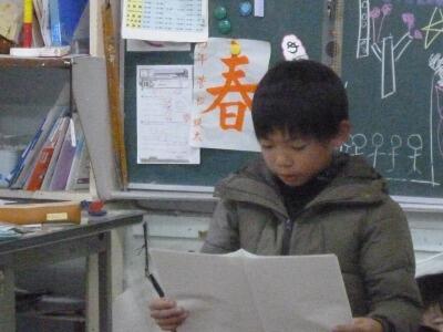1・2年生の国語の授業の様子です。2月29日の最後の参観日で発表する内容の練習をしていました。