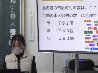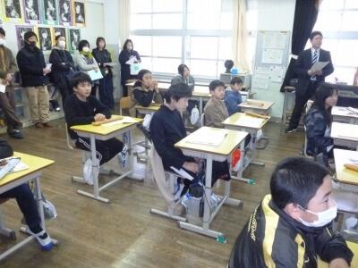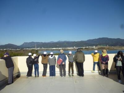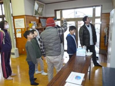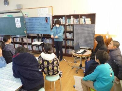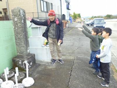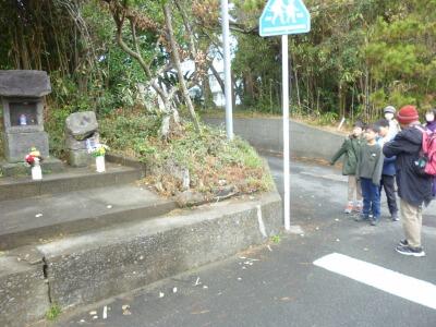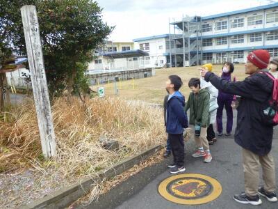 1月21日に、方財公民館長さん主催で「方財里浜さろく会」という催しが行われました。方財町を1周して、歴史的なことや地理的なことについて学ぶ会です。全部で11名の方が参加されていて、本校の児童と職員も5名参加しました。昔は、長浜と繋がっていて、そこをバスも通っていたという話や、映画館もあったという話など、たくさんのことを学びました。最後には、うどんもごちそうになりました。ありがとうございました。