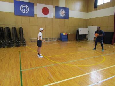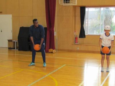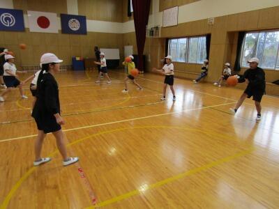 5・6年生の体育の授業の様子です。ALT(外国語指導助手)と一緒に、バスケットボールの練習をしました。もちろん、時間内にできたパスの数を子ども達が英語で言ったりするなど、体育とは言え、英語の学習の要素もたくさん含んでいます。