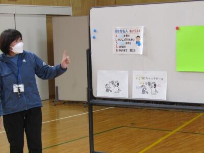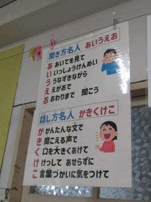1月30日に、2月分の全校集会を実施しました。2月の目標である「聞き方、話し方名人になろう」に関連した指導を行いました。具体的には、「聞き方名人あいうえお」「話し方名人あいうえお」の内容について確認しました。各教室にも掲示しています。