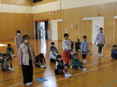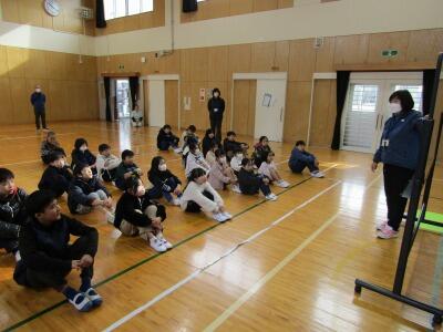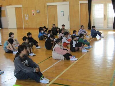 1月26日は、参観日でした。1年生は、体育の授業でした。「体つくりの運動」や「ボールゲーム」を行いました。