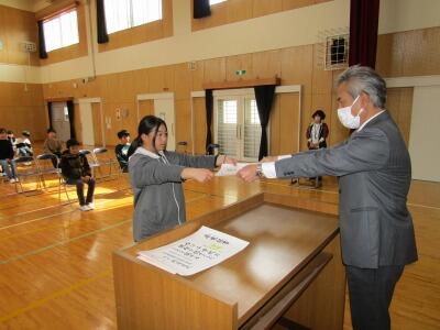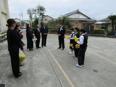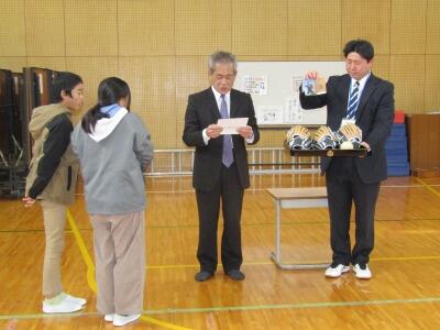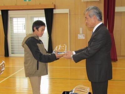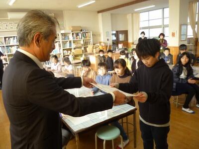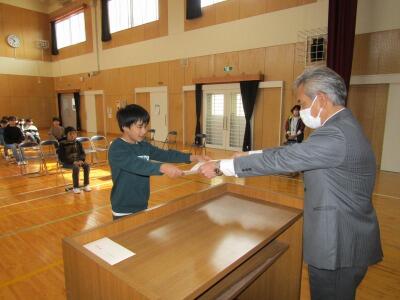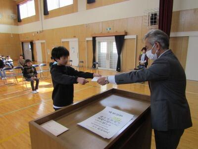 その後、県の漁協主催の「子供をみつめる日」作品展の5年生児童への表彰と、動物の作文コンクールの2年生児童への表彰を行いました。子ども達が頑張っています。