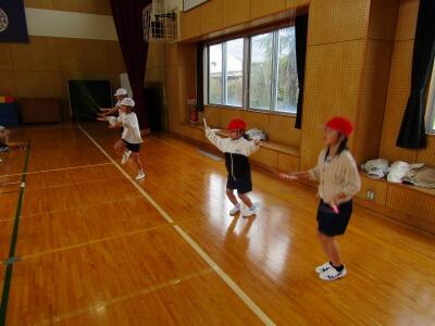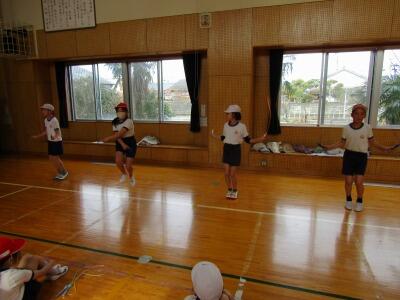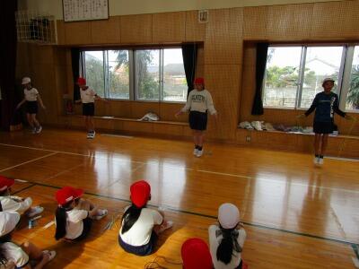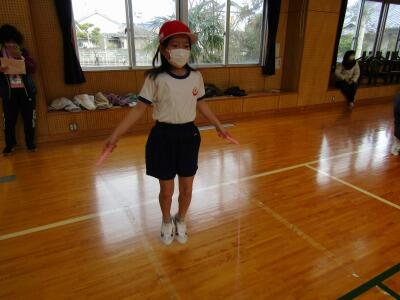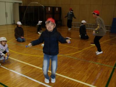 1月29日から、業間の時間に、ぴょんぴょんタイムの活動(なわとび)を始めました。1分跳びをしたり、後ろ跳びや難しい跳び方(あや跳び、交差跳び、二重跳びなど)に挑戦したりしました。この日は天気が悪く、体育館での活動となりました。なわとび大会は、2月16日の予定です。