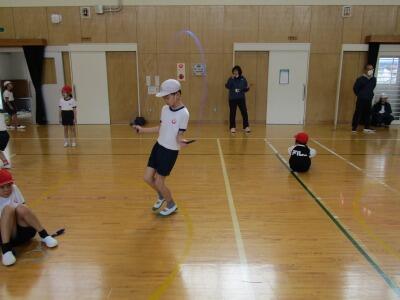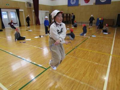 2月16日に、なわとび大会を実施しました。内容は、「1分間跳び」「個人跳び(それぞれの技)」「なわとび名人紹介」です。
