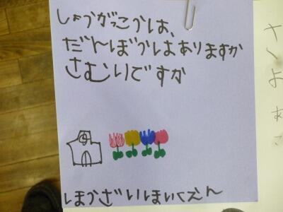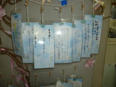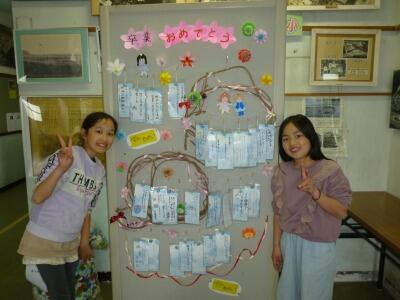 地域の方(いきいきはまゆうサロンさん)が、新しい掲示物を持ってきてくださいました。今回は、「卒業おめでとう」バージョンです。一人一人の子ども達が様々な思いや願いを書いたカードをラミネートして、シーグラスも付けていただいています。ありがとうございます!