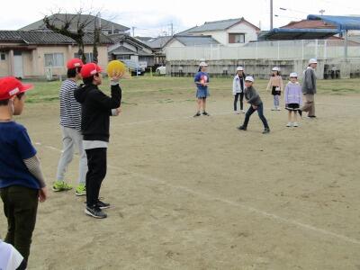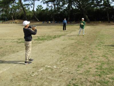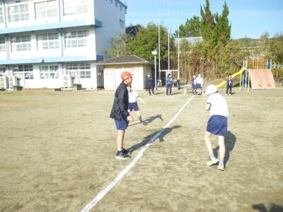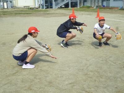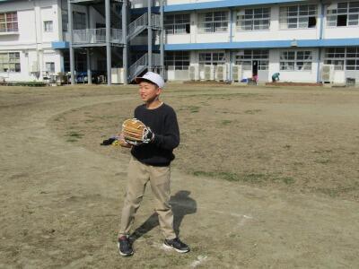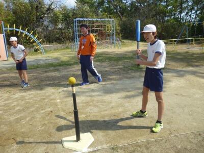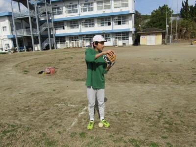 5・6年生の体育の授業の様子です。大谷選手から贈られたグローブを使って、ティーボールをしていました。ただし、少人数ですので、運動量を確保しながらルールを工夫して楽しんでいました。