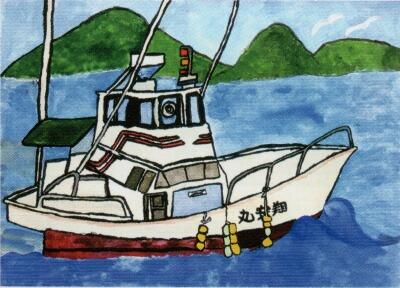 県の漁協主催の「子供をみつめる日」作品展で、本校の5年生の作品が入選しました。夏休みに、自分の家の漁船を描きました。立派な賞状が届いていますので、27日の全校集会で表彰します。おめでとうございます。