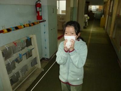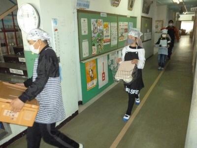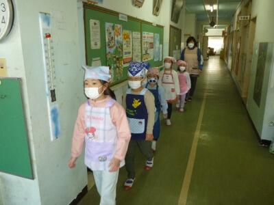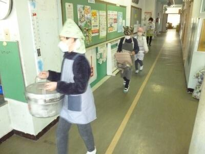 いよいよ年度末となりましたので、給食の準備を自分の家から持ってきたマイエプロンで行っています。これは、確実に給食着を回収するためです。