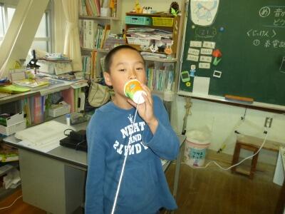 3年生の理科の授業の様子です。糸電話を作って、音の伝わり方について学習しました。どんなときに聞こえるのか、聞こえないのかについて、実験を通して調べていました。