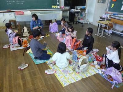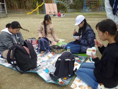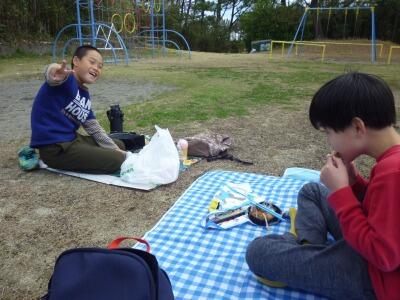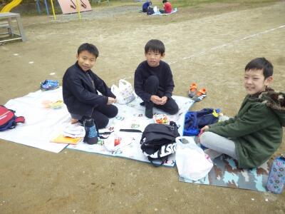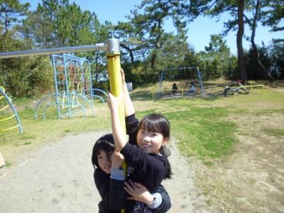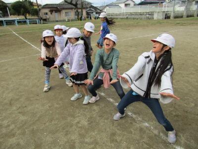3月1日は、お別れ遠足でした。行き先の妙田緑地公園の地面が前日の雨で濡れていたため、校内遠足に変更しました。