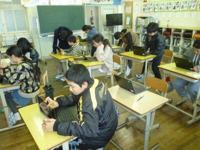 3月15日の「スキルタイム」では、3・4年生は算数のプリント、5・6年生は「キュビナ」による復習に取り組んでいました。「キュビナ」は、インターネットに接続して学ぶ教材です。
