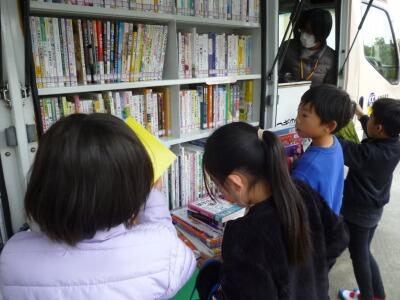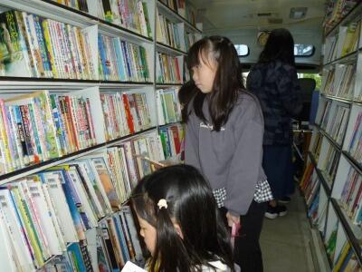 3月19日は、今年度最後のふくろう号の日でした。昼休み時間に、たくさんの子ども達が本を借りに来ていました。