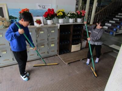 方財小学校では、7:30~7:50に登校することになっています。早く登校した子ども達の中で、朝のボランティア活動に取り組んでいる子どもがいます。本当に、自主的な活動です。偉いですね。