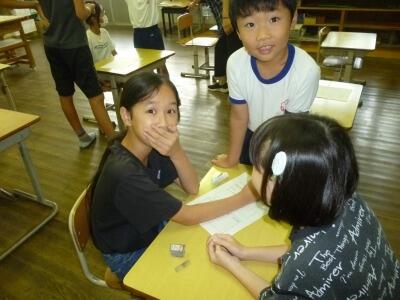 9月11日は、参観日でした。1・2年生は、算数の授業でした。1年生はコップを使った大きさ比べ、2年生は「103-67」のような、繰り下がりが難しい引き算の学習をしていました。