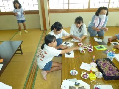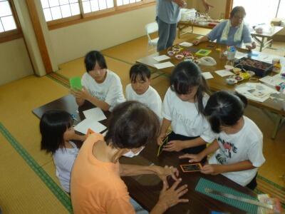 ホールでは、宿題をする子どもや読書をする子どもなどの姿が見られました。畳の部屋では、地域の方に教えてもらいながら作品作りに挑戦していました。お昼ご飯はカレーと唐揚げをおいしくいただきました。