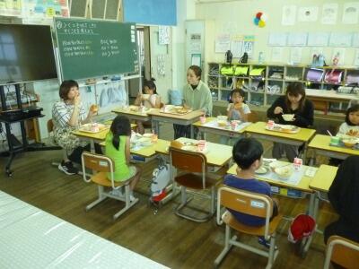 参加者は、希望する教室に行って給食を食べますが、親子で楽しく給食を食べるというよりも、子ども達の普段の給食の様子を見ていただくという内容でした。