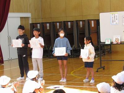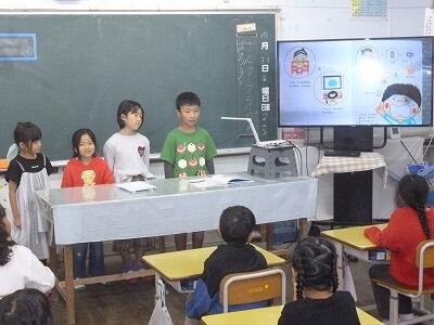 3年生の国語の授業の様子です。1・2年生に、おすすめの本を紹介したり、読み聞かせをしたりしていました。読書への意欲が高まりますね。