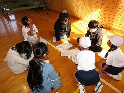 10月28日に、11月分の全校集会を行いました。まず、11月の目標である「よい本を選んでたくさん読もう」に関連して、担当職員による全体指導を行いました。その後、縦割り班に分かれ、先月の目標に対する反省を行ったり、今月自分達が頑張ることを決めたりしました。
