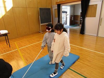 2月16日に、3・4年生の総合的な学習として、延岡市社会福祉協議会より講師をお招きして、アイマスク体験の活動を行いました。このような体験を通して、福祉への理解を深めてほしいと思います。