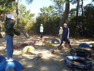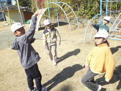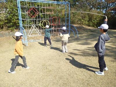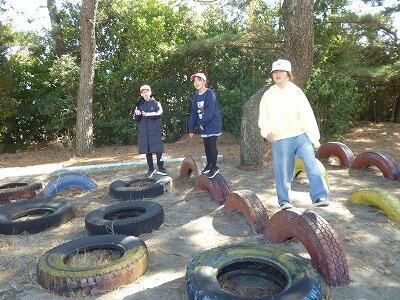 昼休み時間の様子です。この日は、午前中風がすごく強かったのですが、昼休み時間は穏やかな陽気でした。大縄、ブランコ、タイヤの上での鬼ごっこなど、楽しく過ごしていました。